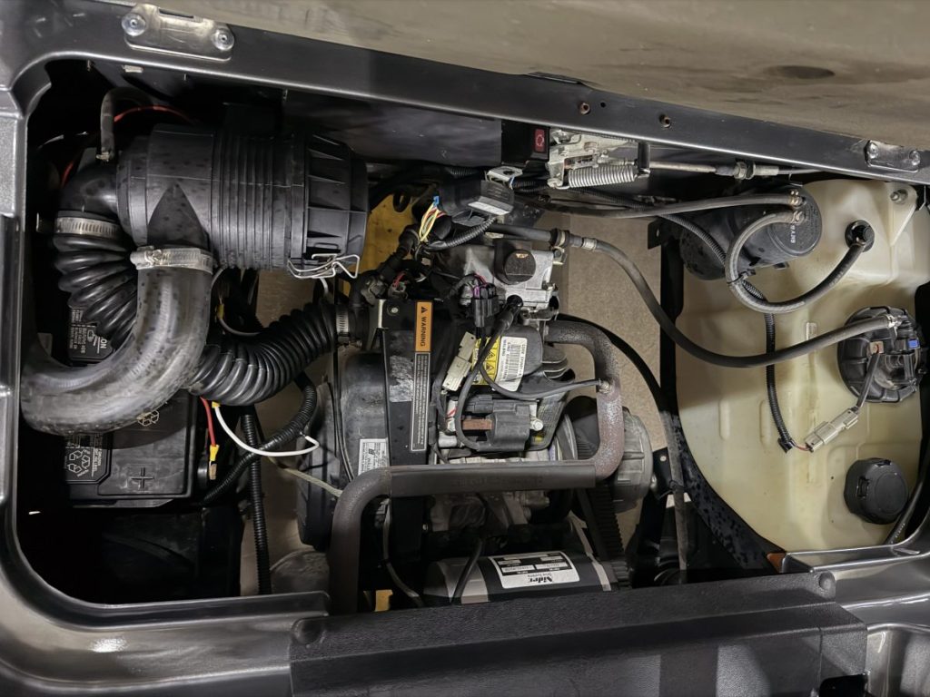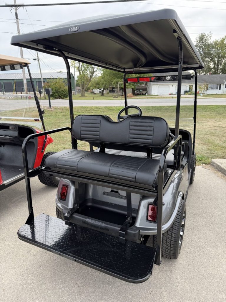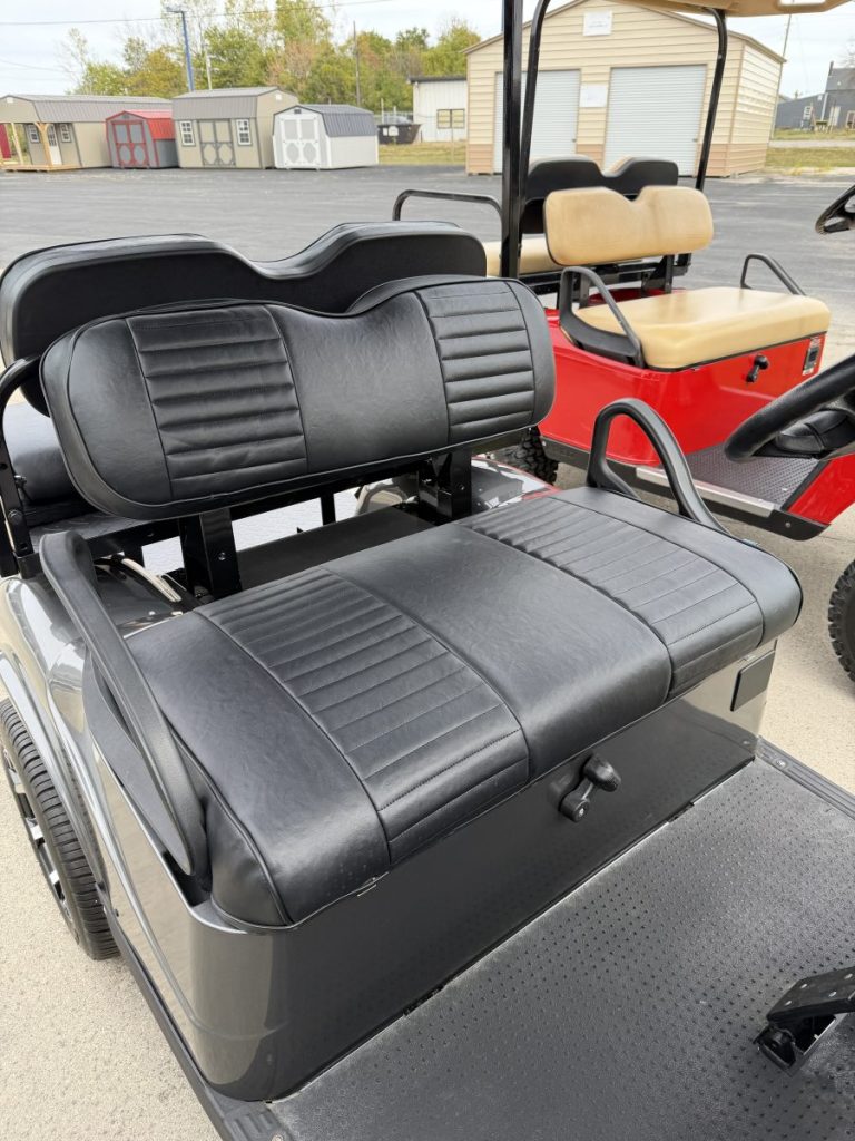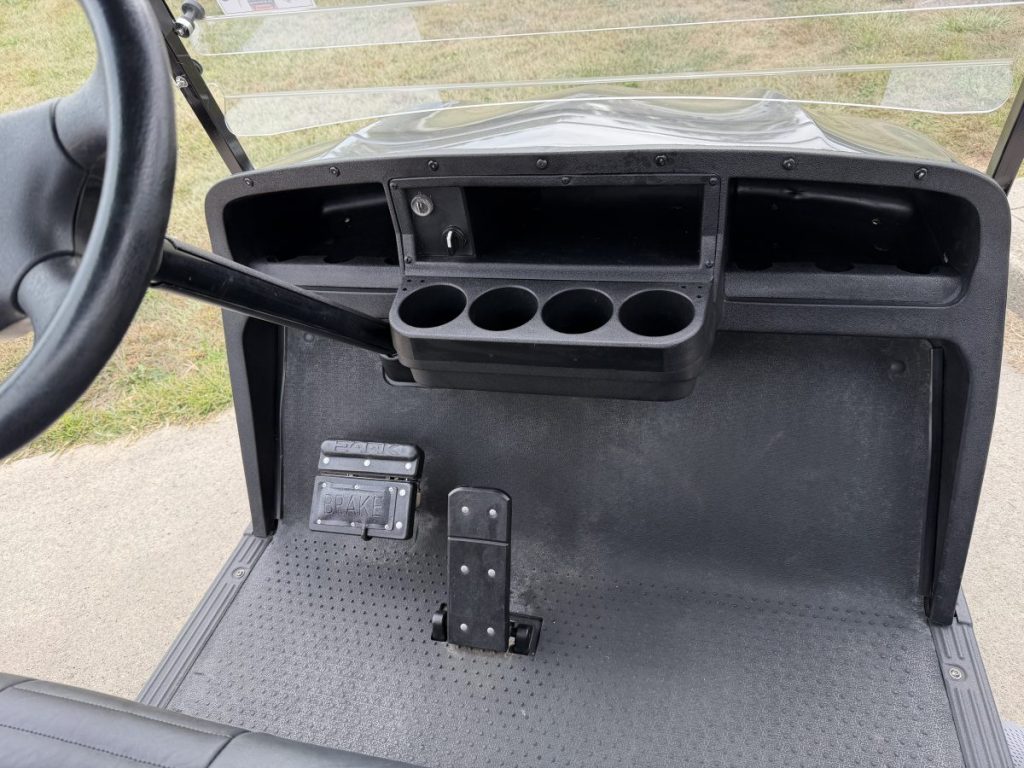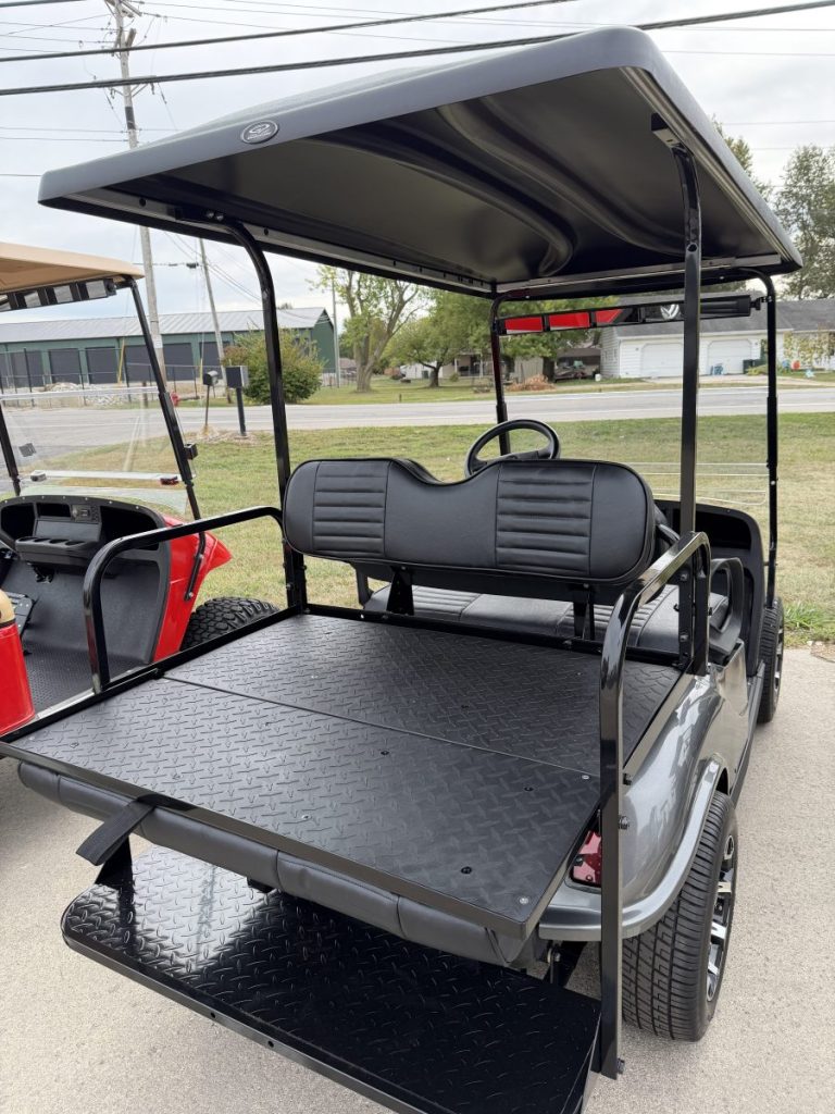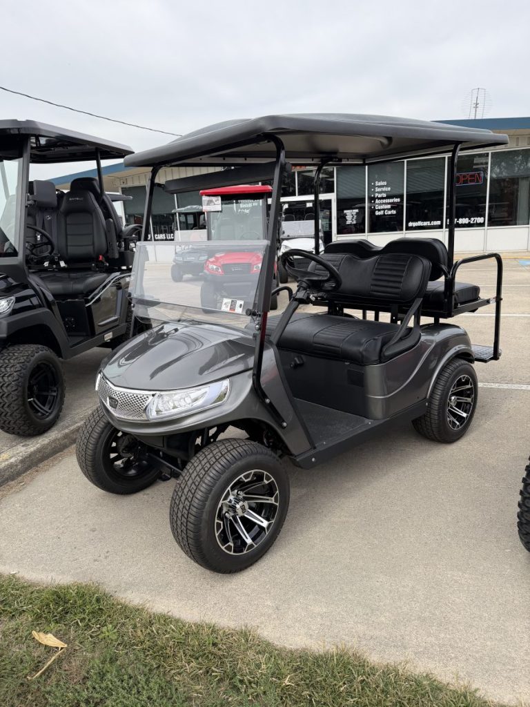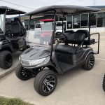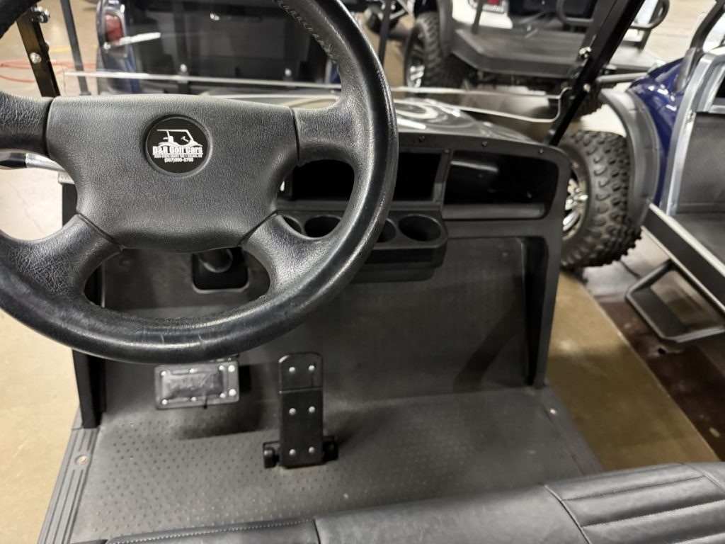 2019 EZGO TXT Gas EFI with 13.5HP Kawasaki Engine, New DoubleTake Phoenix Body, Custom Seats, Rear Flip Seat, Custom Wheels and Tires, and a Street Legal light Kit.