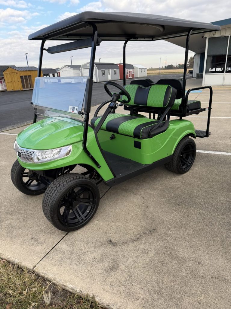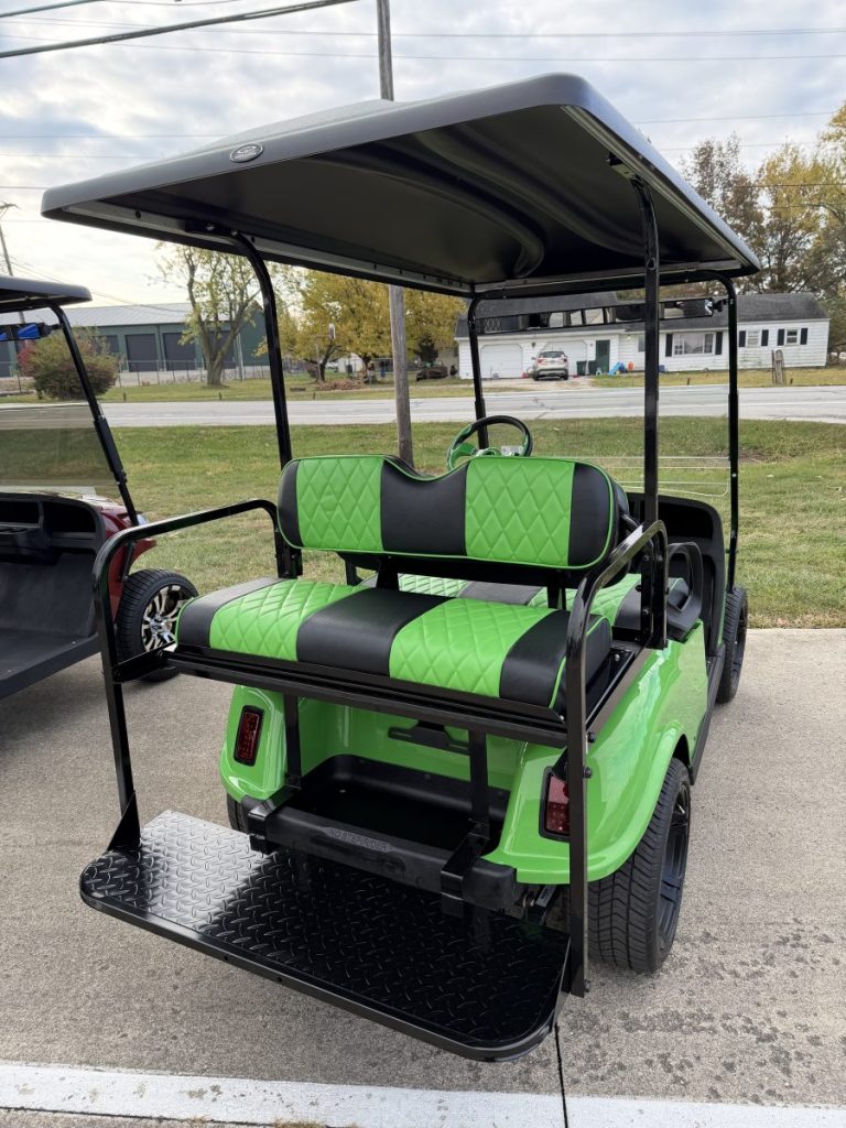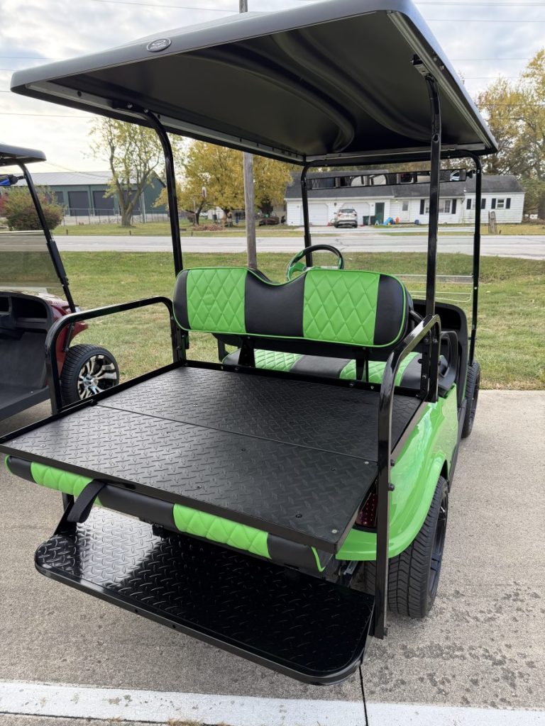 2019 EZGO TXT Gas EFI with a 13.5HP Kawasaki Engine, New Phoenix Body, Rear Flip Seat, Street Legal LED Lighting, Extended Top and Custom Wheels and Tires.