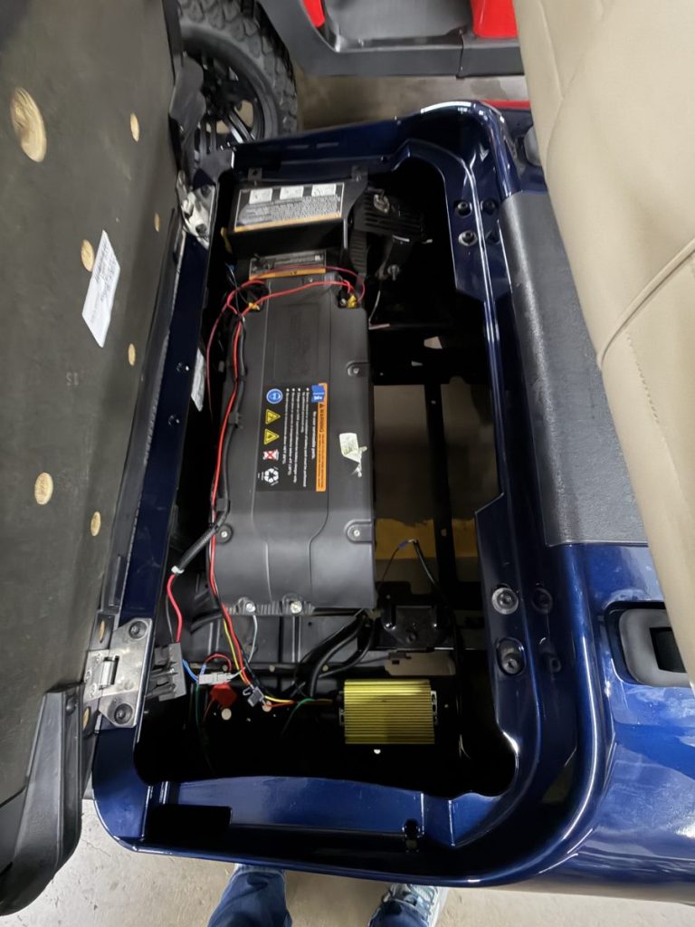 2020 EZGO RXV Elite Lithium with a new body, rear flip seat, street legal light kit, and custom wheels and tires. Battery is under factory warranty until March 2028.